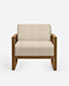 Sofá de exterior SELMA 1 plaza en teca natural, 78 x 83 x 67 cm, con tapizado color marfil (Ivory)